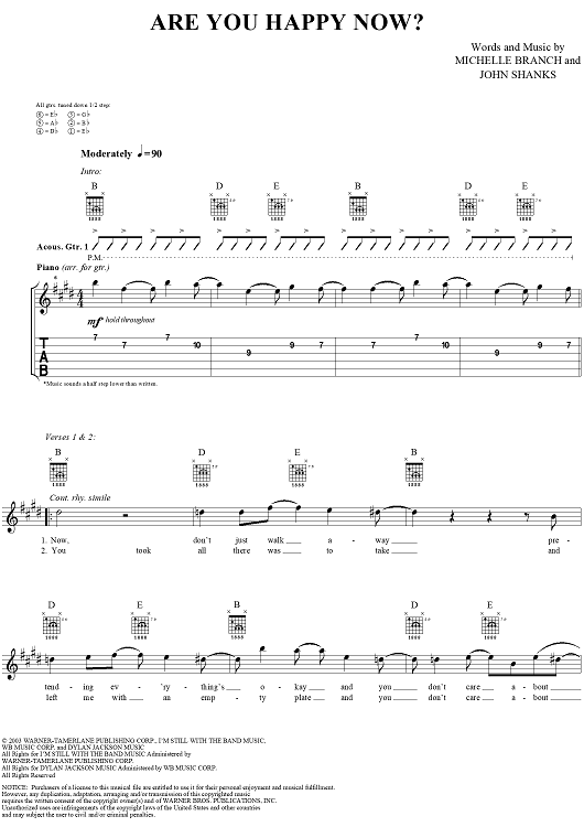 "Are You Happy Now?" Sheet Music by Michelle Branch