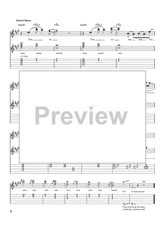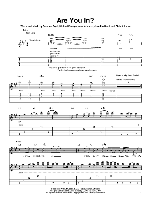 Digital Sheet Music for Are You In? by Brandon Boyd, Mike Einziger, Incubus, Alex Katunich, Chris Kilmore, José Antonio Pasillas II scored for Easy Guitar Tab; id:382071