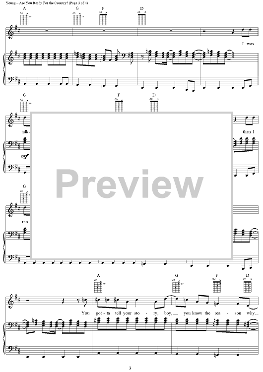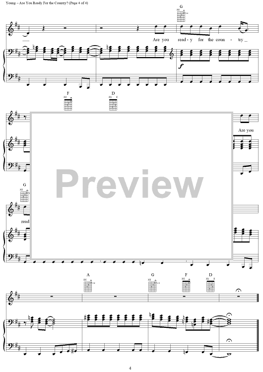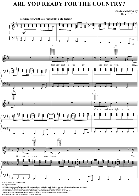 Digital Sheet Music for Are You Ready For the Country? by Neil Young scored for Piano/Vocal/Chords; id:262913