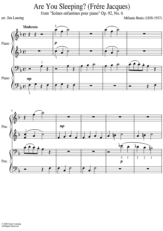 "Are You Sleeping? (Frére Jacques)" Sheet Music by Mélanie Bonis