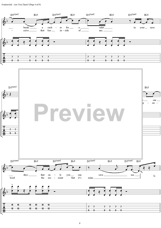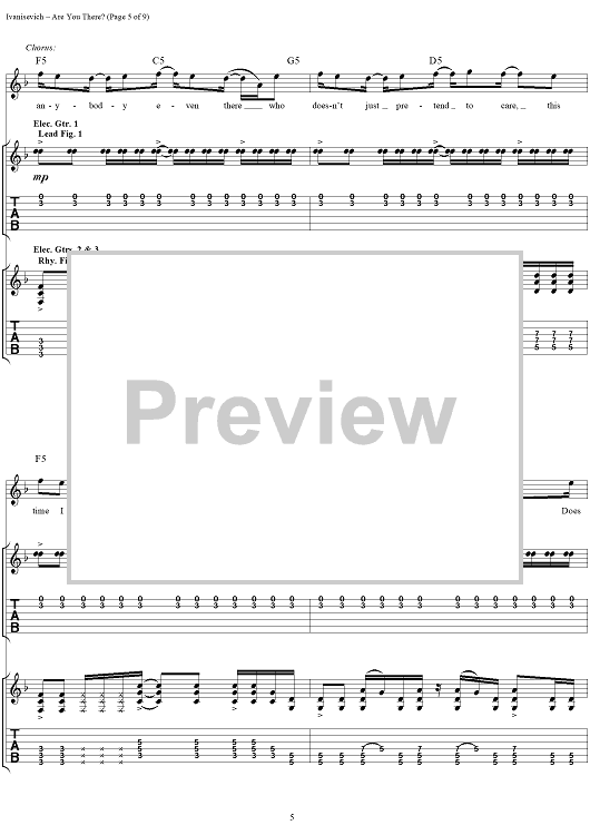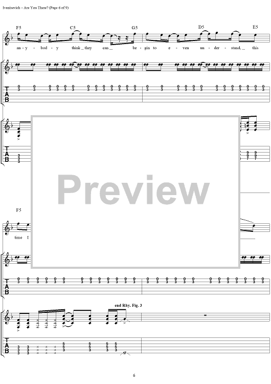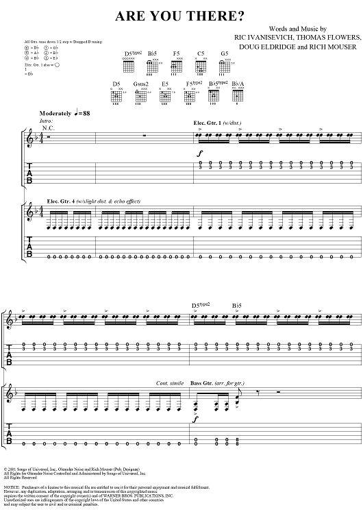 Digital Sheet Music for Are You There? by Oleander, Ric Ivanisevich, Thomas Flowers, Doug Eldridge, Rich Mouser scored for Guitar Tab/Vocal; id:285300