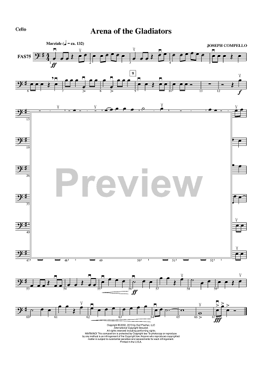 "Arena of the Gladiators - Cello" Sheet Music by Joseph Compello