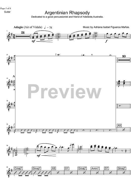 "Argentinian Rhapsody - Guitar" Sheet Music by Adriana Isabel Figueroa Mañas
