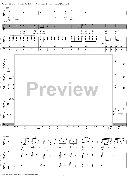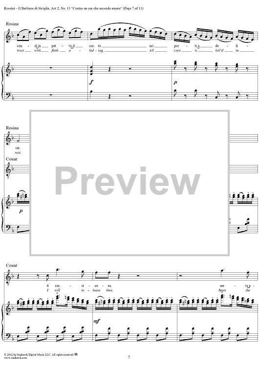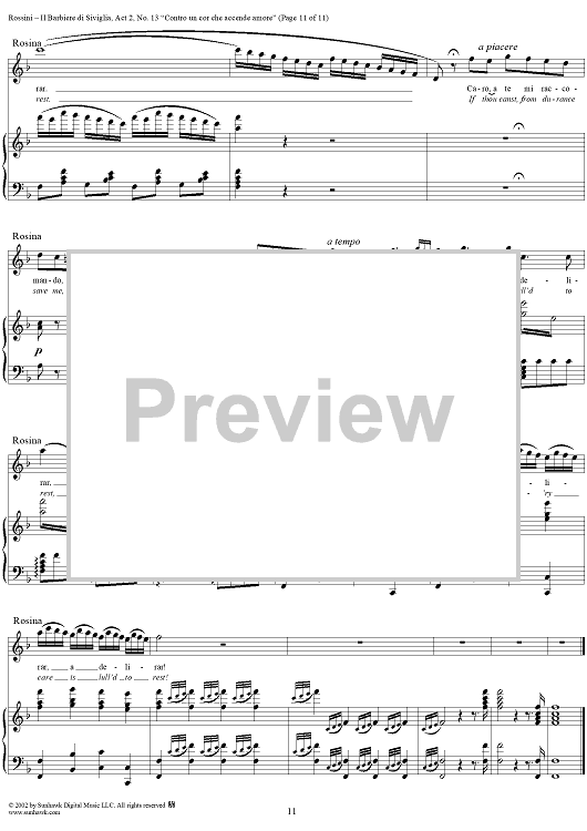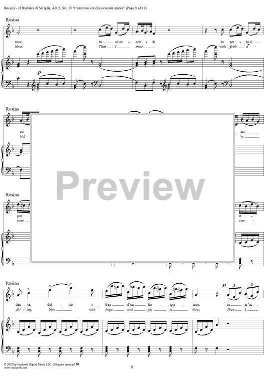 "Aria: Contro un cor, No. 13 from "Il Barbiere di Siviglia"" Sheet Music by Gioachino Rossini