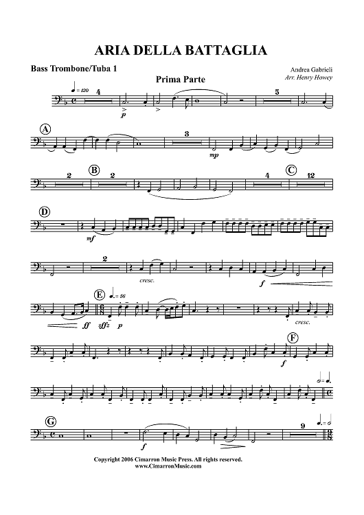 Digital Sheet Music for Aria Della Battaglia - Tuba 1 by Henry Howey, Andrea Gabrieli scored for Double Brass Quintet; id:357622