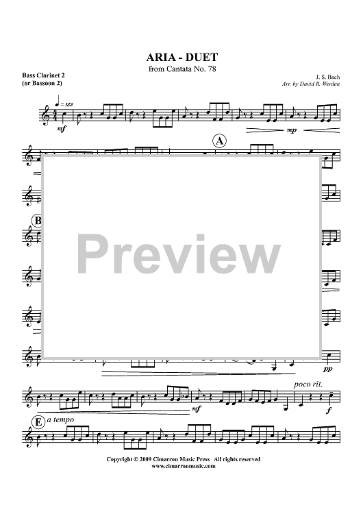 Digital Sheet Music for Aria - Duet from Cantata No. 78 - Bassoon 2 or Bass Clarinet 2 by David Werden, Johann Sebastian Bach scored for Euphonium / Tuba duet with Woodwind Ensemble; id:416798