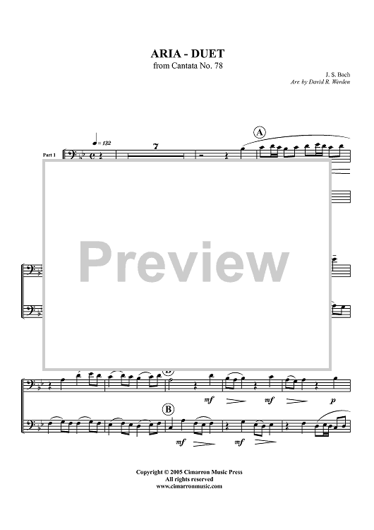 Digital Sheet Music for Aria - Duet from Cantata No. 78 - Solo Euphonium/Tuba by , David Werden, Johann Sebastian Bach scored for Euphonium / Tuba duet with Woodwind Ensemble; id:416789