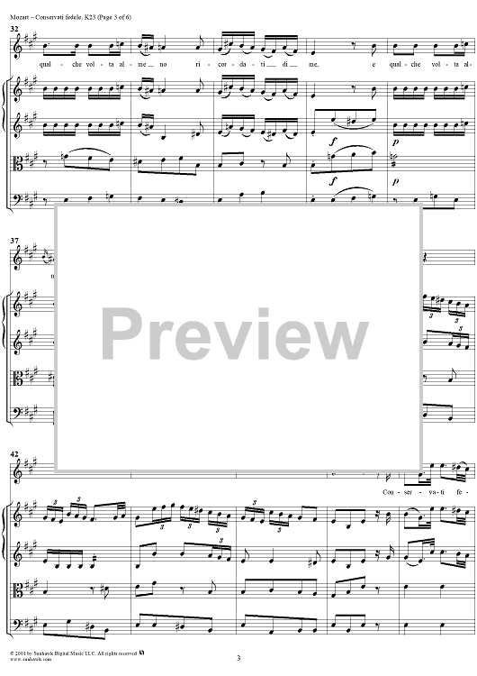Digital Sheet Music for Aria for Soprano and Strings: "Conservati fedele", K23 - Full Score by Wolfgang Amadeus Mozart scored for Soprano/Strings; id:242037