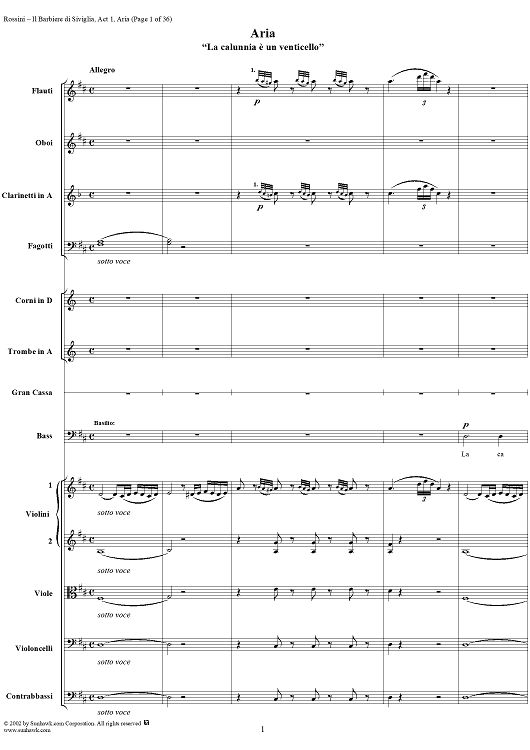 "Aria: La calunnia, No. 8 from "Il Barbiere di Siviglia" - Full Score" Sheet Music by Gioachino Rossini