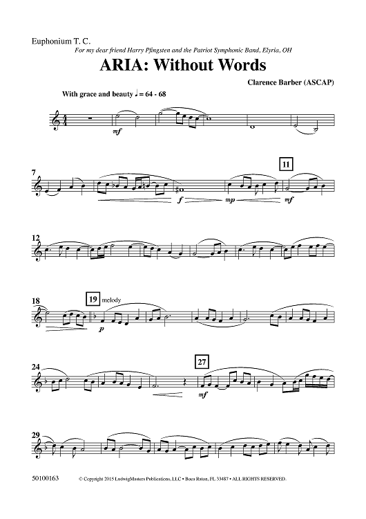 "Aria: Without Words - Euphonium TC" Sheet Music by Clarence Barber