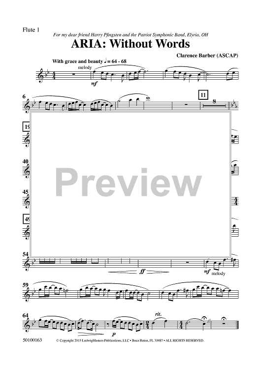 "Aria: Without Words - Flute 1" Sheet Music by Clarence Barber