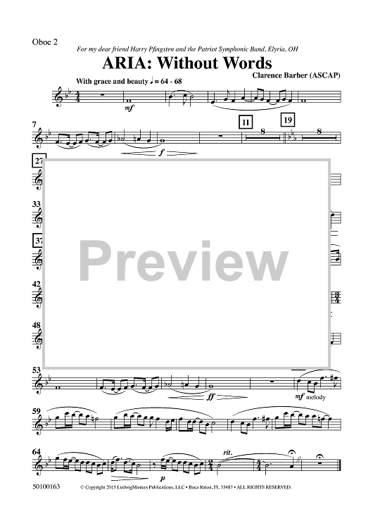 Digital Sheet Music for Aria: Without Words - Oboe 2 by Clarence Barber scored for Concert Band; id:459306