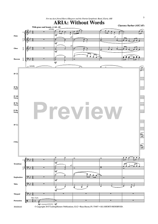 Digital Sheet Music for Aria: Without Words - Score by Clarence Barber scored for Concert Band; id:459301