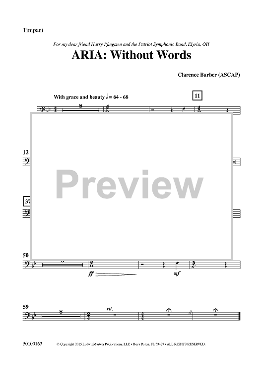 Digital Sheet Music for Aria: Without Words - Timpani by Clarence Barber scored for Concert Band; id:459330