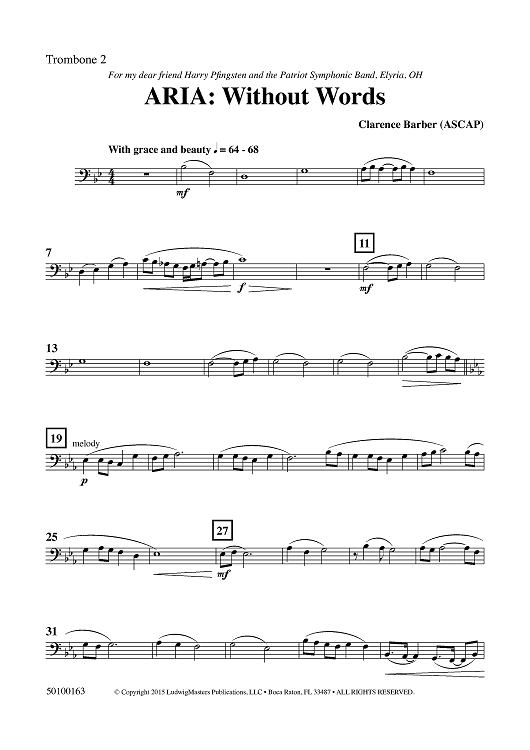 "Aria: Without Words - Trombone 2" Sheet Music by Clarence Barber