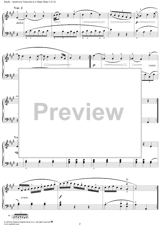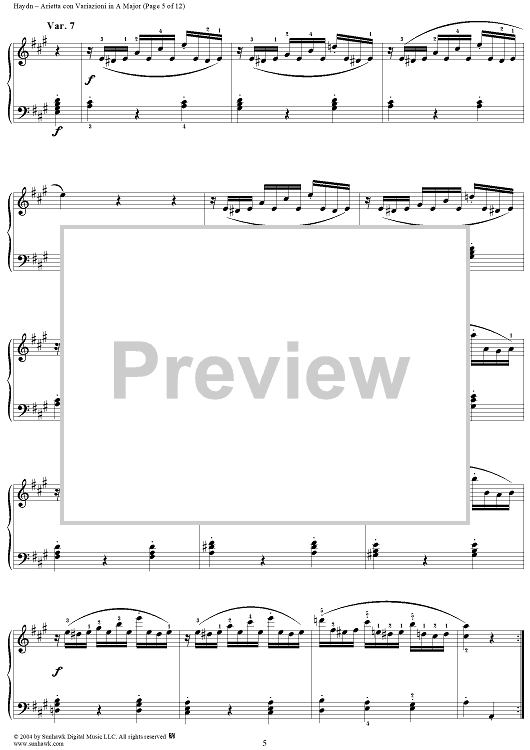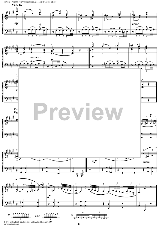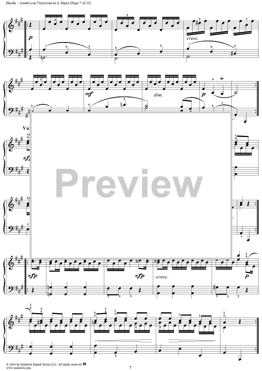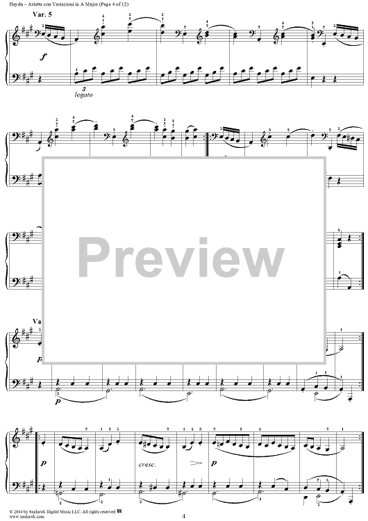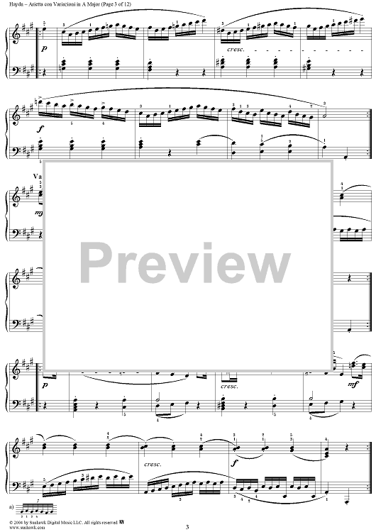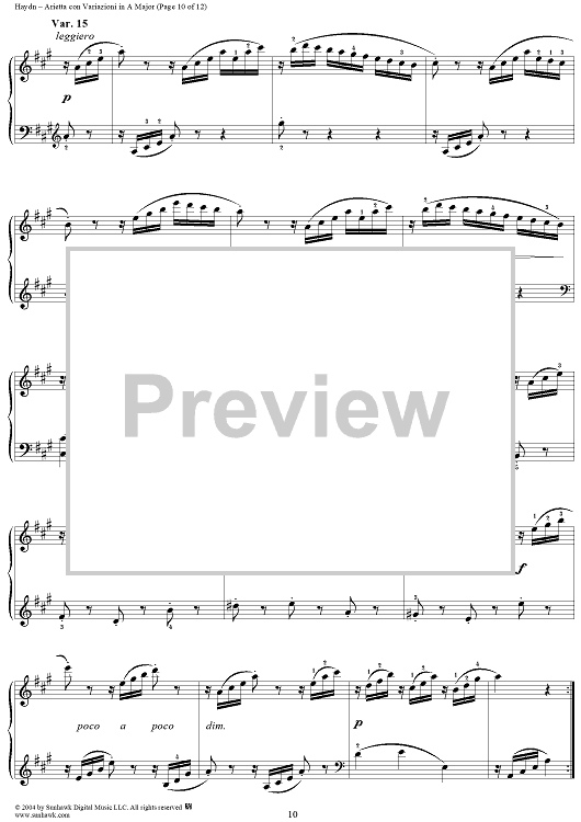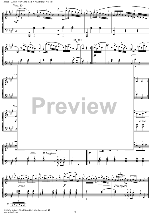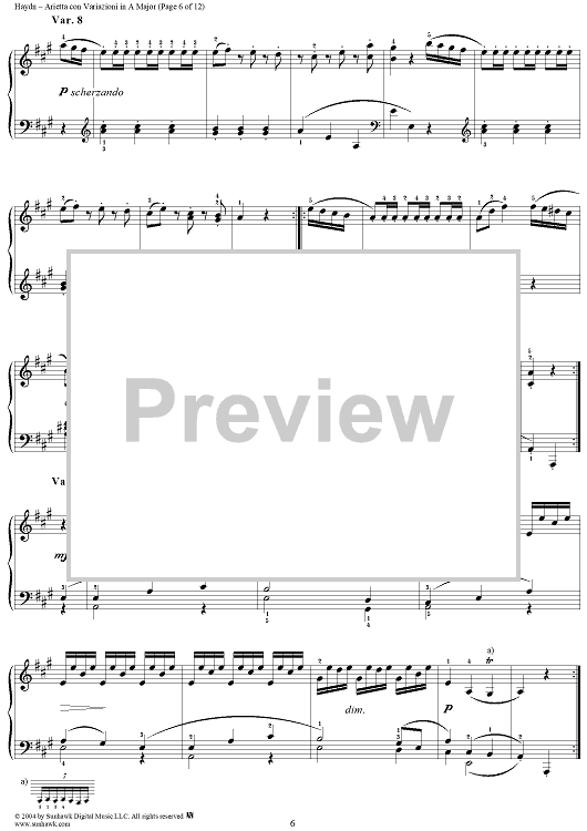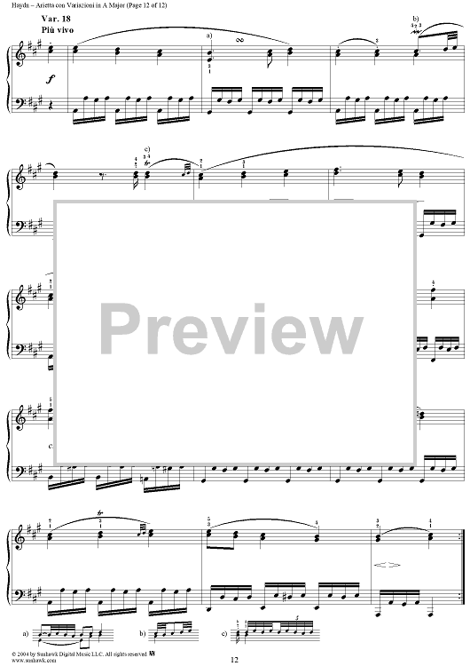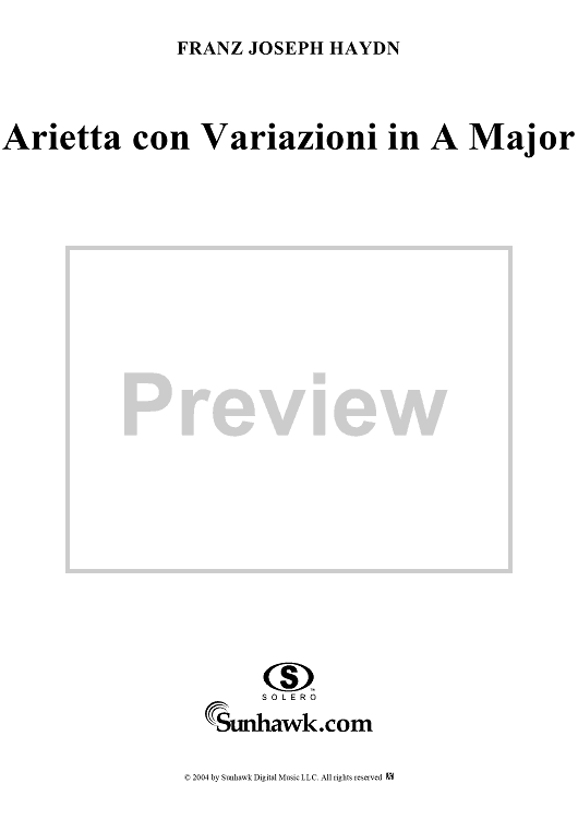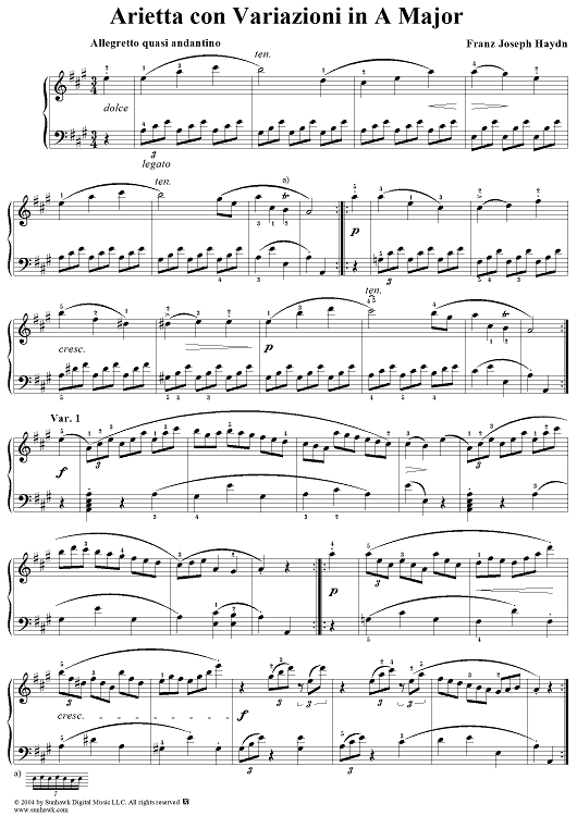 Digital Sheet Music for Arietta con Variazioni in A Major by Franz Joseph Haydn scored for Piano Solo; id:266094