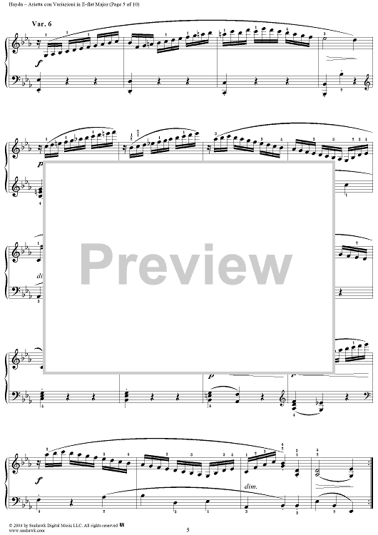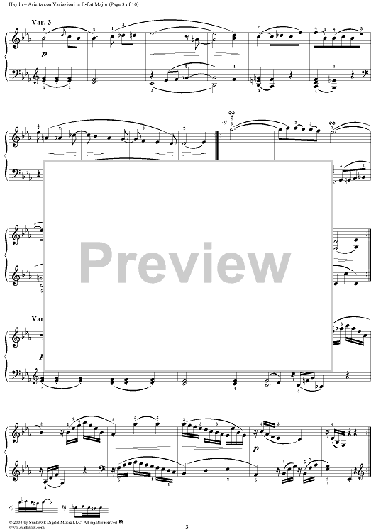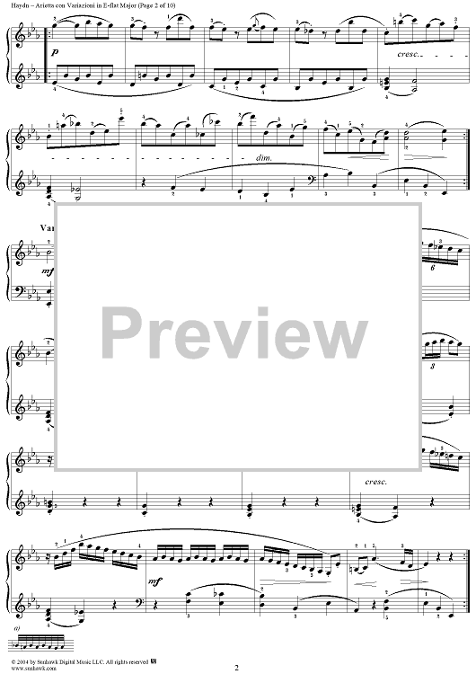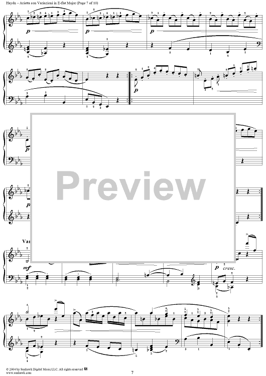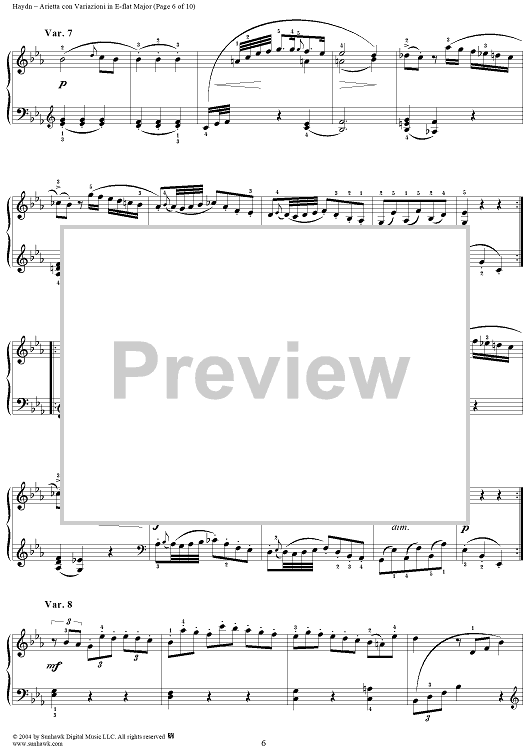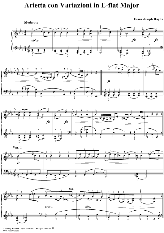 Digital Sheet Music for Arietta con Variazioni in E-flat Major by Franz Joseph Haydn scored for Piano Solo; id:265814