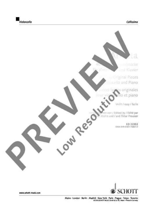 These pieces for cello and piano range from the baroque to the modern era and are ideal for music lessons, concerts and competitions – but equally good for simply enjoying at home. As implied by the title 'Arietta', all of these pieces are designed to make the cello ‘sing’, through expressive playing and the development of a beautiful tone. The anthology contains major pieces for the first three years of music lessons. As well as well-known classics by composers such as de Fesch and Hindemith, there are numerous musical rarities for you to discover. ARIETTA - press reviews: "[A] highly attractive compilation of recital pieces for cellists of all ages." - STRINGENDO
