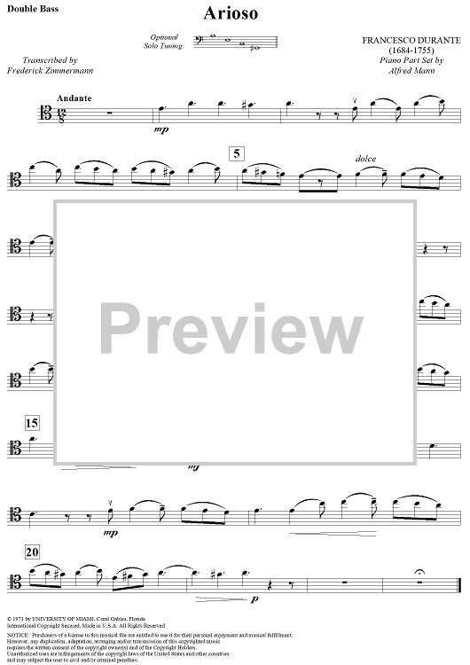 "Arioso - Double Bass" Sheet Music by Francesco Durante