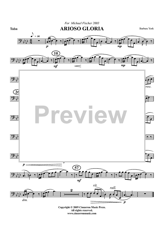 Digital Sheet Music for Arioso Gloria - Tuba by Barbara York scored for Tuba/Piano; id:416331