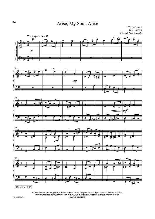 Digital Sheet Music for Arise, My Soul, Arise by Finnish Folk Melody, Terry Osman scored for Piano Solo; id:434180