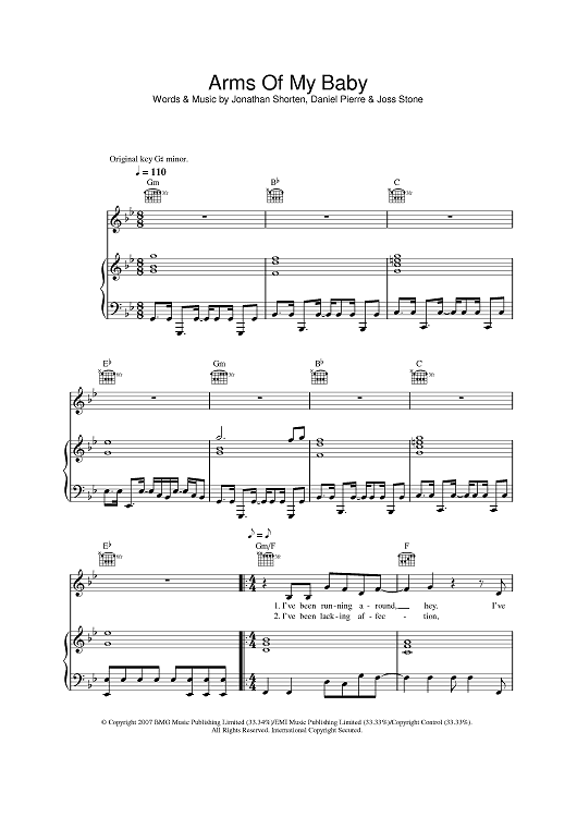 Digital Sheet Music for Arms Of My Baby by Daniel Pierre, Jonathan Shorten, Joss Stone scored for Piano/Vocal/Chords; id:397119