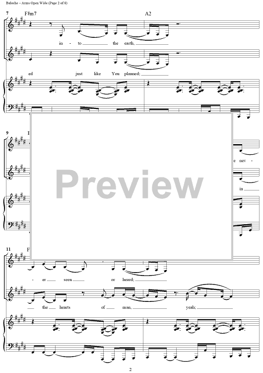 Digital Sheet Music for Arms Open Wide by Rita Baloche scored for Mixed Chorus/Piano; id:308897