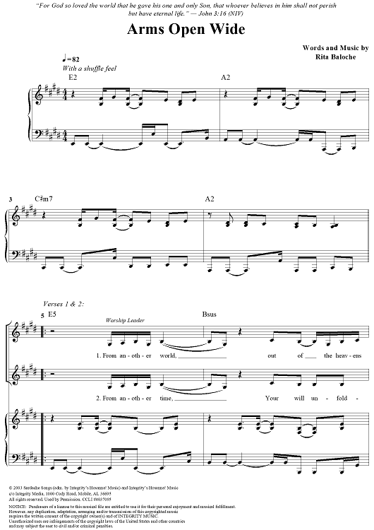 "Arms Open Wide" Sheet Music by Rita Baloche