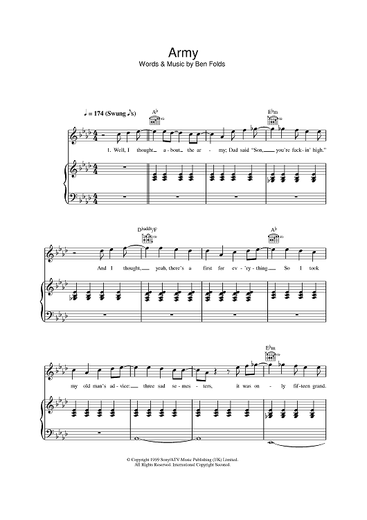 Digital Sheet Music for Army by Ben Folds, Ben Folds Five scored for Piano/Vocal/Chords; id:388441