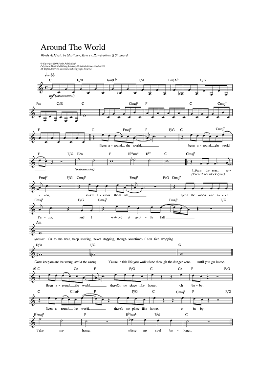 Digital Sheet Music for Around The World by East 17 scored for Lead Sheet; id:379013