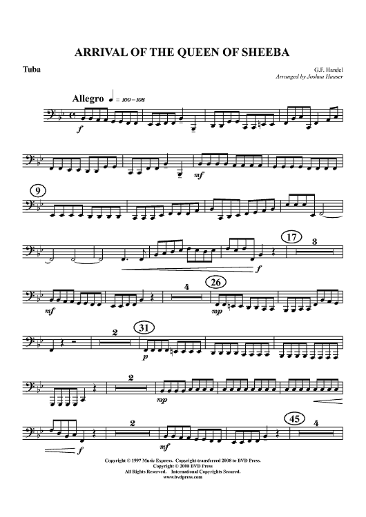 "Arrival of the Queen of Sheeba - Tuba" Sheet Music by George Frideric Handel
