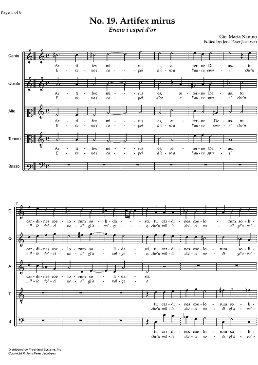 Digital Sheet Music for Artifex mirus - Erano i capei d'or by , Giovanni Maria Nanino scored for SATB Choir; id:326649