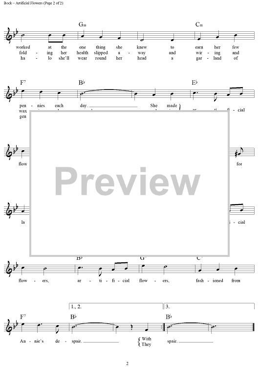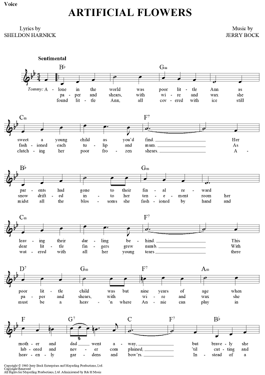 Digital Sheet Music for Artificial Flowers by Jerry Bock, Sheldon Harnick scored for Lead Sheet; id:460922