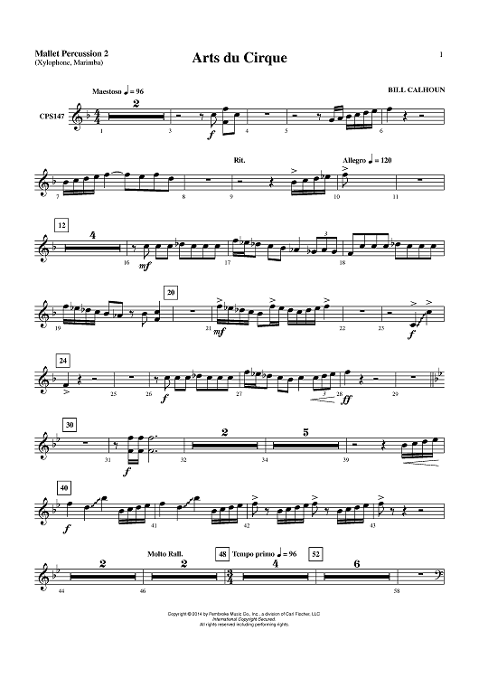 Digital Sheet Music for Arts du Cirque - Mallet Percussion 2 by Bill Calhoun scored for Concert Band; id:450857