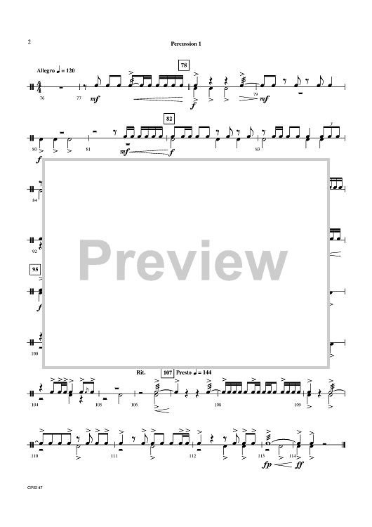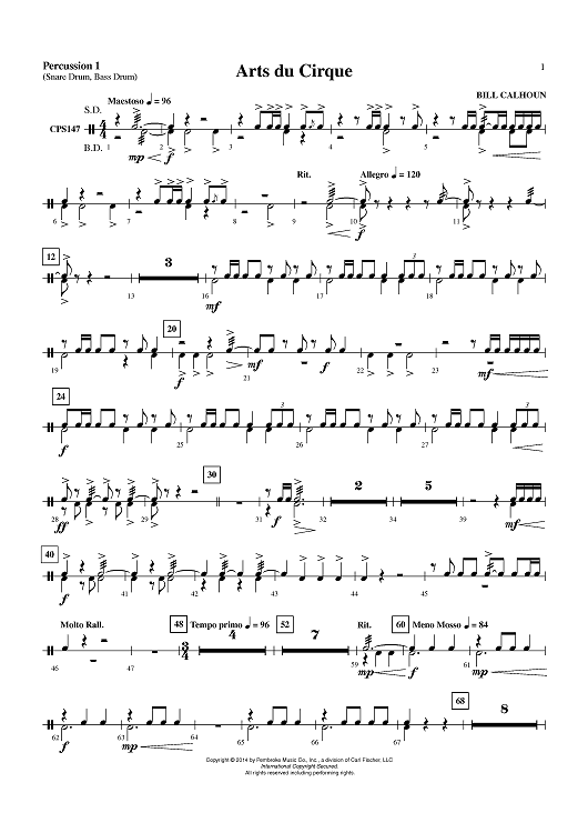 Digital Sheet Music for Arts du Cirque - Percussion 1 by Bill Calhoun scored for Concert Band; id:450859