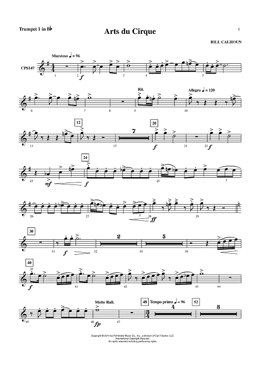 Digital Sheet Music for Arts du Cirque - Trumpet 1 in Bb by Bill Calhoun scored for Concert Band; id:450846