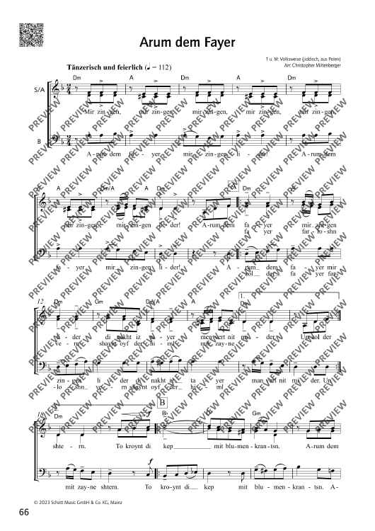 Digital Sheet Music for Arum dem Fayer by Christopher Miltenberger scored for School Choir, Mixed Choir (sab); id:500589