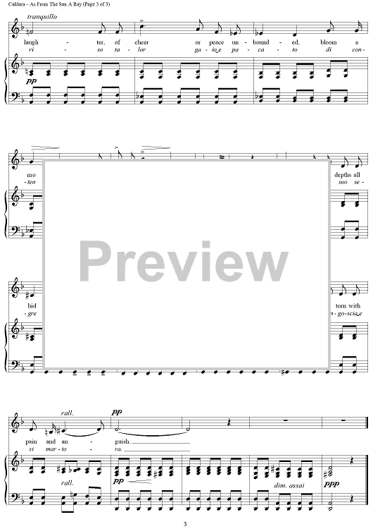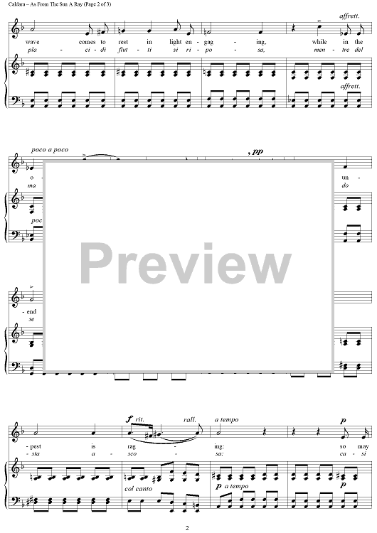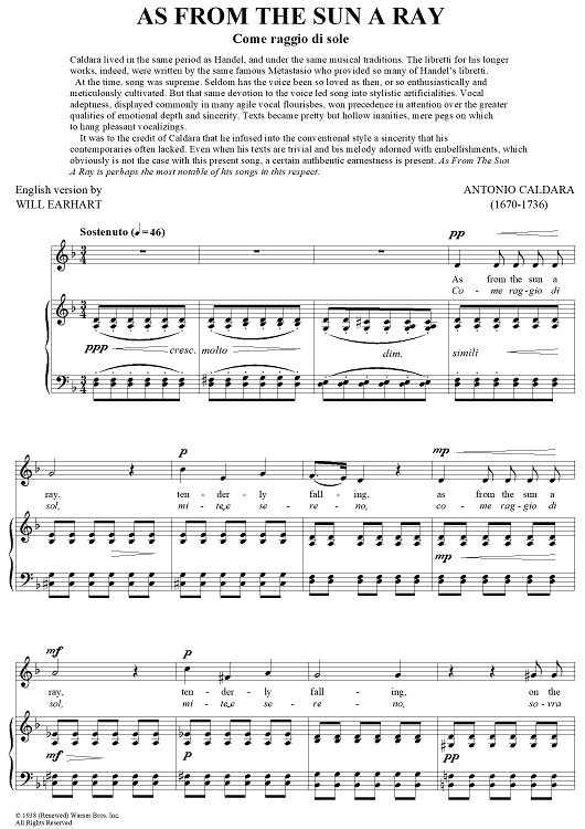 "As From The Sun A Ray (Come raggio di sole)" Sheet Music by Antonio Caldara