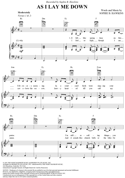 Digital Sheet Music for As I Lay Me Down by Sophie B. Hawkins scored for Piano/Vocal/Chords; id:265964