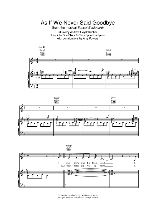 Digital Sheet Music for As If We Never Said Goodbye by Don Black, Andrew Lloyd Webber, Amy Powers, Christopher Hampton, Barbra Streisand scored for Piano/Vocal/Chords; id:375980