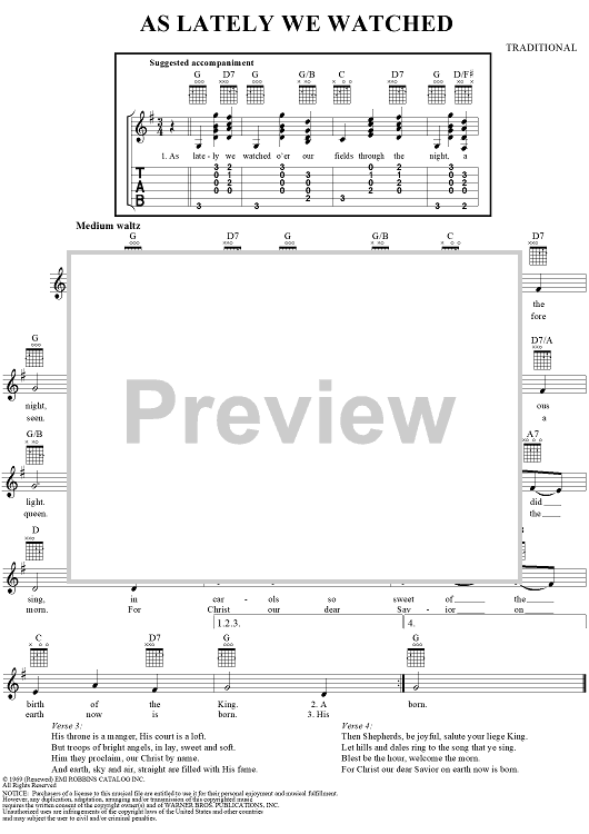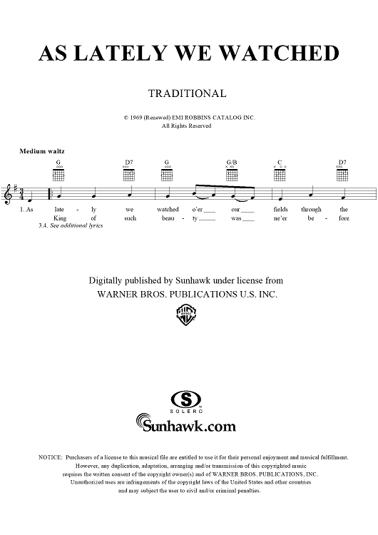 "As Lately We Watched" Sheet Music by Traditional