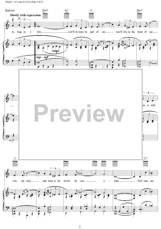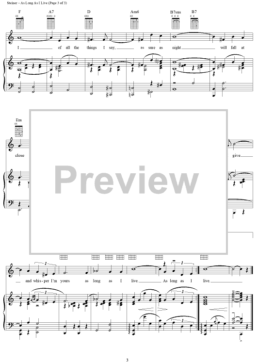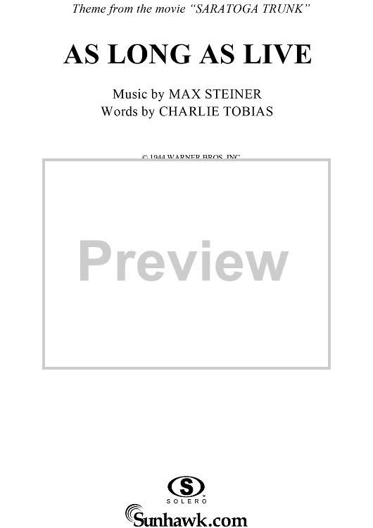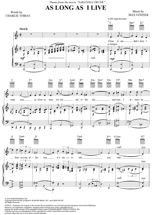 Digital Sheet Music for As Long As I Live by Max Steiner, Charlie Tobias scored for Piano/Vocal/Chords; id:114124