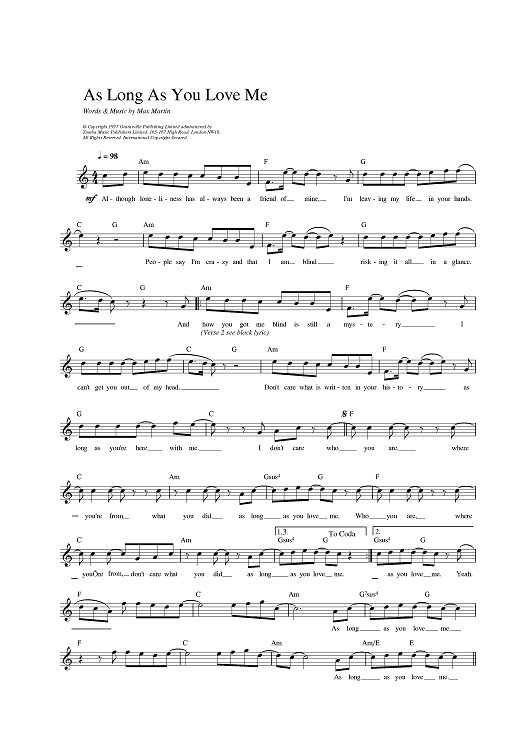 Digital Sheet Music for As Long As You Love Me by Backstreet Boys scored for Lead Sheet; id:379054