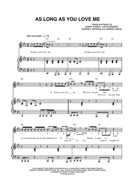 "As Long As You Love Me" Sheet Music by Justin Bieber