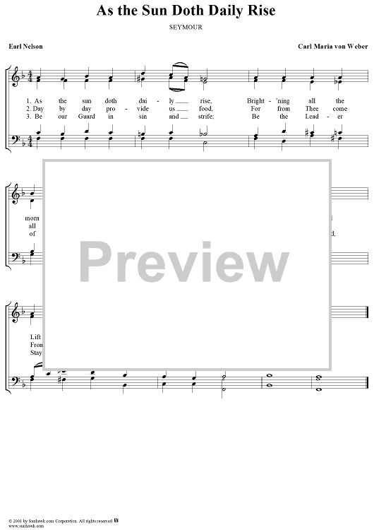 Digital Sheet Music for As the Sun Doth Daily Rise by Carl Maria Von Weber scored for Four-part Mixed Chorus; id:253529