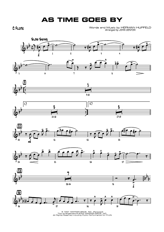 "As Time Goes By - C Flute" Sheet Music by Herman Hupfeld