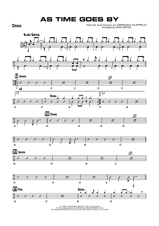 Digital Sheet Music for As Time Goes By - Drums by Herman Hupfeld, John Denton scored for Jazz Ensemble; id:359619