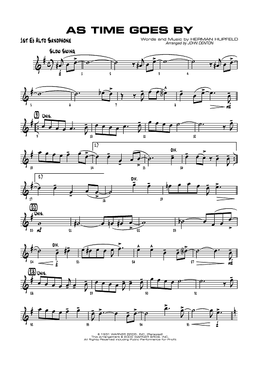 Digital Sheet Music for As Time Goes By - E-flat Alto Saxophone 1 by Herman Hupfeld, John Denton scored for Jazz Ensemble; id:359603