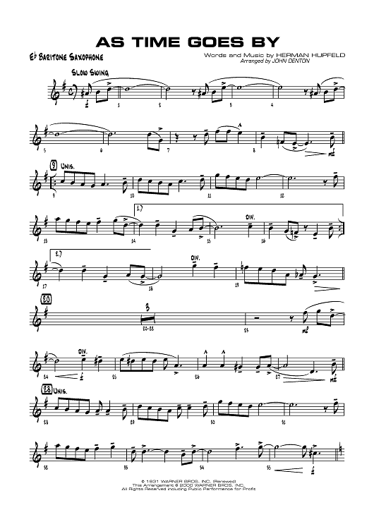 "As Time Goes By - E-flat Baritone Saxophone" Sheet Music by Herman Hupfeld
