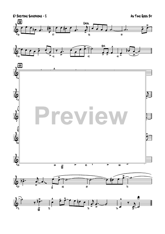 Digital Sheet Music for As Time Goes By - E-flat Baritone Saxophone by Herman Hupfeld, John Denton scored for Jazz Ensemble; id:359607